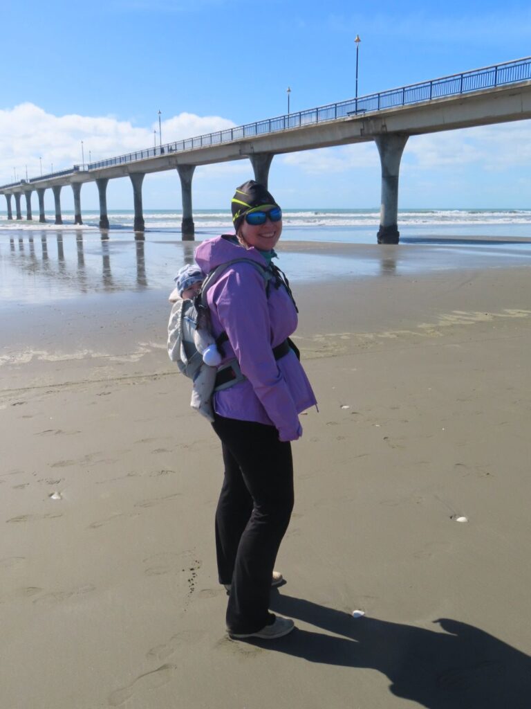 Am Morgen dauert es eine Weile bis wir loskommen. Wir sind noch nicht eingespielt und Julian verbringt einige Zeit damit zu überlegen, wie wir alles sinnvoll verstauen können. Zum Glück sind sie auf dem Campingplatz flexibel und erlauben auch bis 11 Uhr auszuchecken. Eigentlich ist 10 Uhr Standard. Danach fahren wir noch mal an den Strand etwas weiter südlich bei Christchurch. Elias nehmen wir in die Manduca und tragen ihn auf dem Rücken. So spazieren wir ein bisschen am Strand entlang, machen noch ein paar kleinere Besorgungen und fahren dann zum Lake Tekapo. Von Christchurch kriegen zir nur einen kleinen Eindruck. U.a. bleibt hängen, dass 2011 ein Erdbeben die Stadt erschütterte, infolgedessen viele Häuser neu gebaut wurden, weshalb man wenig alte Bauten sieht.