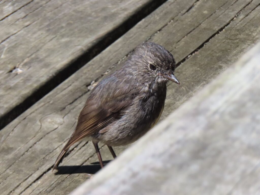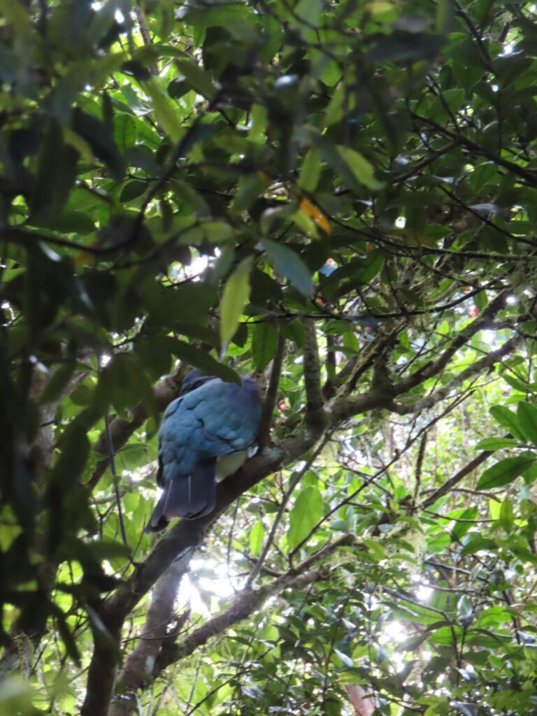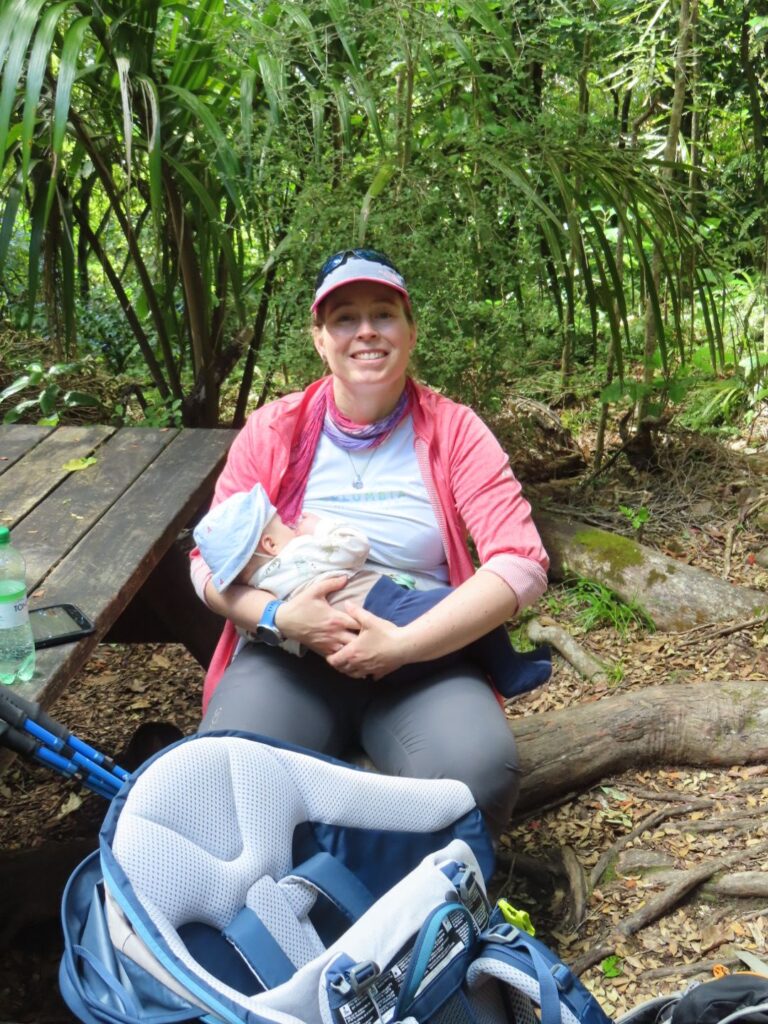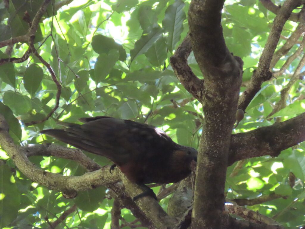 Nach der Anmeldung und einem Biosicherheitscheck, werden wir mit dem Boot, wie üblich, mithilfe eines Traktors ins Wasser gelassen und wir bekommen unsere Schwimmwesten. Auf Kapiti Island angekommen, erläutert der Guide uns während eines Einführungsvortrages die wichtigsten Vögel und Verhaltensweisen auf der Insel. Danach gehen wir los. Wir nehmen den Wilkensontrack, machen an der Fütterungsstation für Hihis einen Essens- und Stillstopp für Elias. Danach nehmen wir Fahrt auf und sind nach kurzer Zeit auf dem Gipfel. Dort machen wir Pause und essen Mittag. Es ist schon 13:30 Uhr und wir haben mittlerweile ganz schön Hunger.