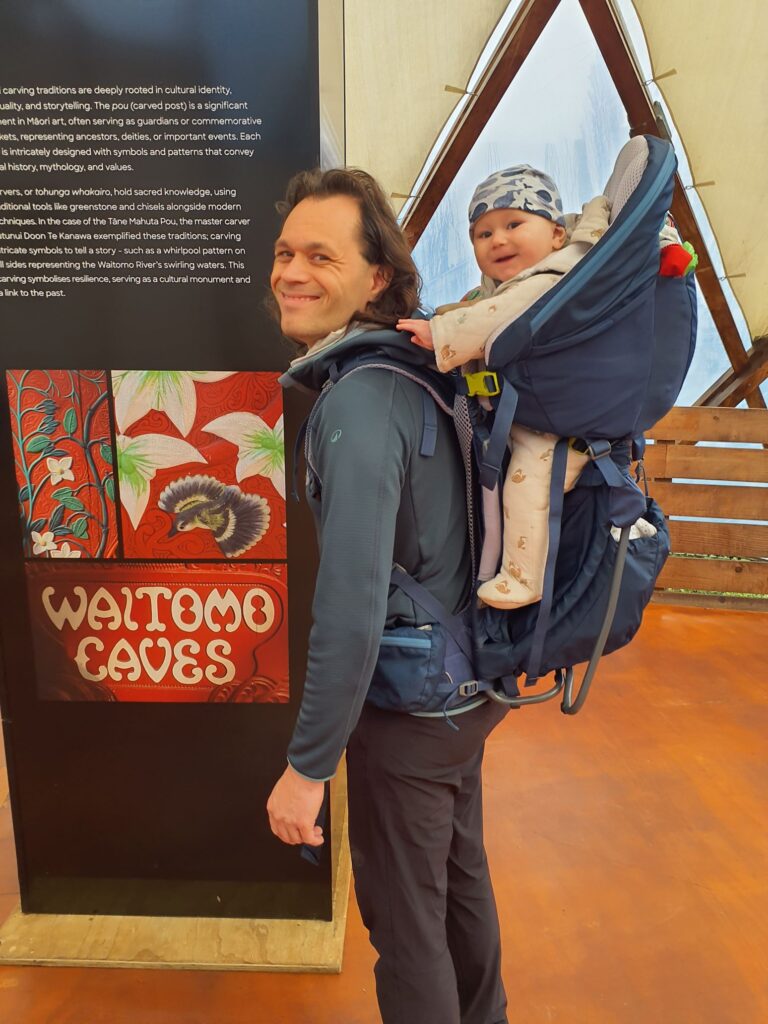 Heute haben wir mit etwas über 5 Stunden reiner Fahrzeit eine lange Strecke zurückzulegen, die längste unseres Urlaubs. Wir haben etwas Angst davor, dass Elias das nicht gut mitmacht, brechen daher früh auf. Aber wir kommen super voran. Julian fährt fast 4 Stunden durch, davon schläft Elias die Hälfte und vergnügt sich mit seinem Kiwi, dem Urlaubssouvenir mit langem Schnabel zum Draufbeißen, die restliche Zeit. Fürs Mittagessen geht es heute zum McDonalds und dann auch schon weiter. Am Ende sind wir noch vor 15 Uhr auf dem Campingplatz in Waitomo, wo wir uns den Rest des Tages erholen. Elias entspannt auf der Krabbeldecke. Danach erkunden er und ich den Campingplatz während Julian ein kleines Mittagsschläfchen macht. Der Campingplatz ist wirklich schön, hat sogar eine kleine Lamafarm, einen Pool und einen Whirlpool. Man kann im Fernsehraum in Sofas relaxen, Airbhockey spielen oder etwas lesen. Wir finden, dass dies der schönste Campingplatz ist auf dem wir bisher waren. Und als wir später entscheiden noch zu waschen, ist Julian begeistert davon wie einfach und unkompliziert das geht. Einfach auswählen, was man will, die Kreditkarte ranhalten und los. Dafür kriegt der Campingplatz noch mal Extrapunkte. Und es gibt auch ein Familienbad, wo Elias von uns am Abend gebadet wird.
