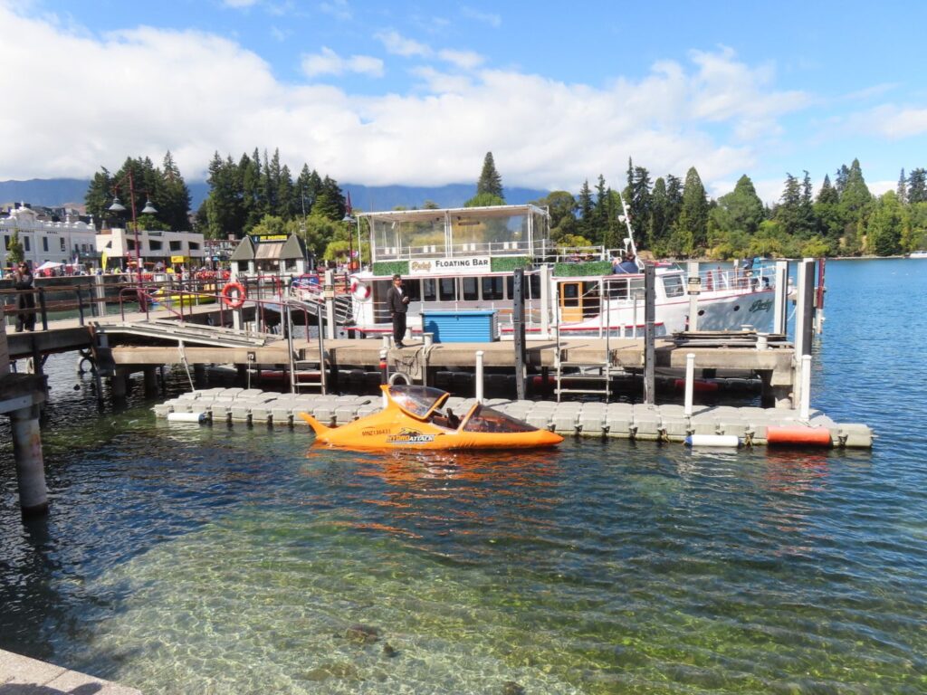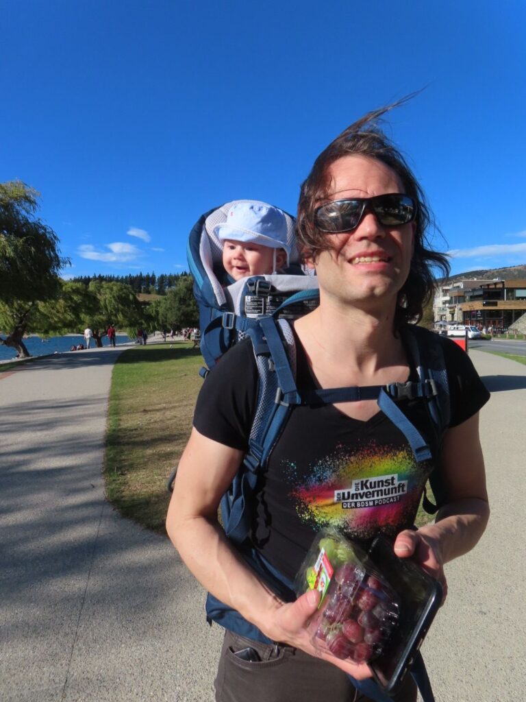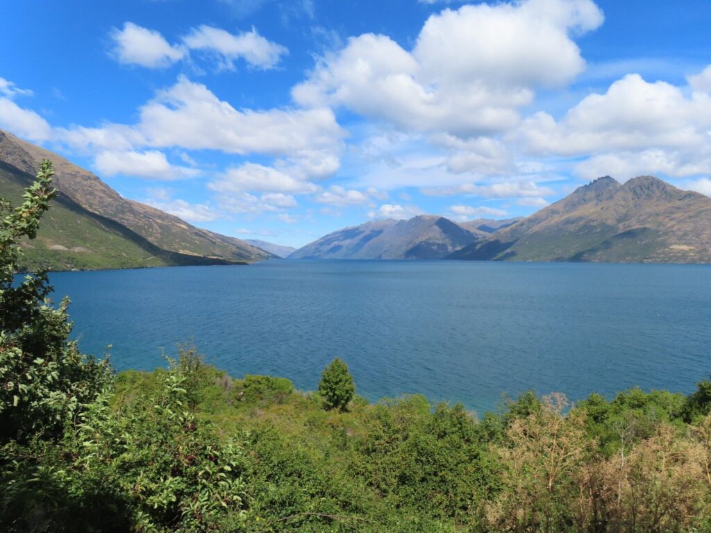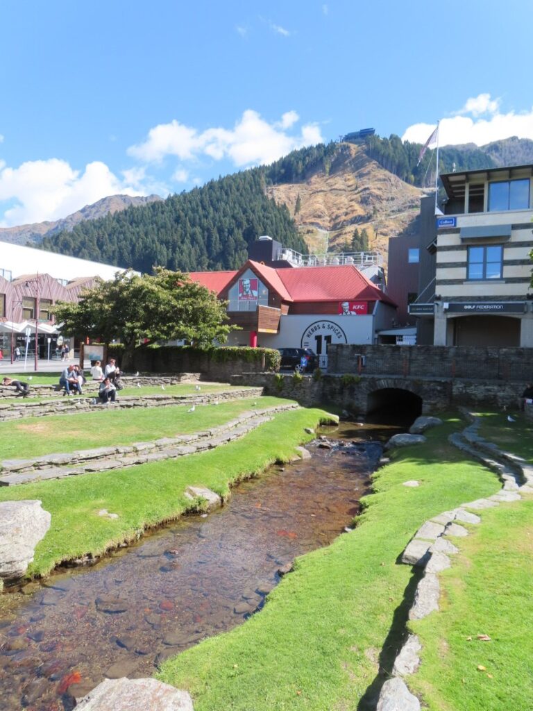 Bis zum Lake Hawea kennen wir die Strecke ja schon, bis auf das letzte kleine Stück. Wir sind vom Lake Wanaka aus schon einmal so gefahren, und der Lake Hawea liegt direkt neben dem Lake Wanaka. Anders als auf dem Hinweg entscheiden wir uns aber in Queenstown Halt zu machen, der Abenteuerstadt. Hier kann man Kajak fahren, Raften, Bungeejumpen und vieles mehr. Mit Baby ist das alles nichts für uns, aber es ist trotzdem nett in der Innenstadt und am Hafen herumzulaufen und etwas von dem Flair aufzusaugen. Das Wetter tut sein Übriges. Wir essen auch gut Mittag, in einem karibischen Restaurant, und gönnen uns danach Patagoniaeis. Nach beidem sagen wir, dass uns ein Gericht bzw. eine Kugel gereicht hätten, aber lecker war es!