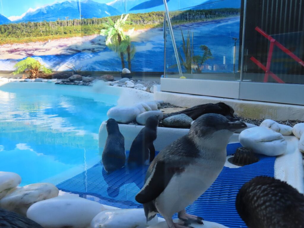 Danach machen wir uns auf ins Wildlife Centre, um einen Kiwi zu sehen. Wir haben Pech, er verkriecht sich schon sehr früh und kommt nicht mehr raus. Da unser Ticket 48 Stunden gilt, wollen wir es am Folgetag morgens noch einmal probieren. Wir hoffen, wir haben dann mehr Glück. Immerhin machen wir Bekanntschaft mit dem Zwergpinguin, der kleinsten Pinguinart. Verletzte Tiere finden hier ein Zuhause und werden aufgepeppelt.