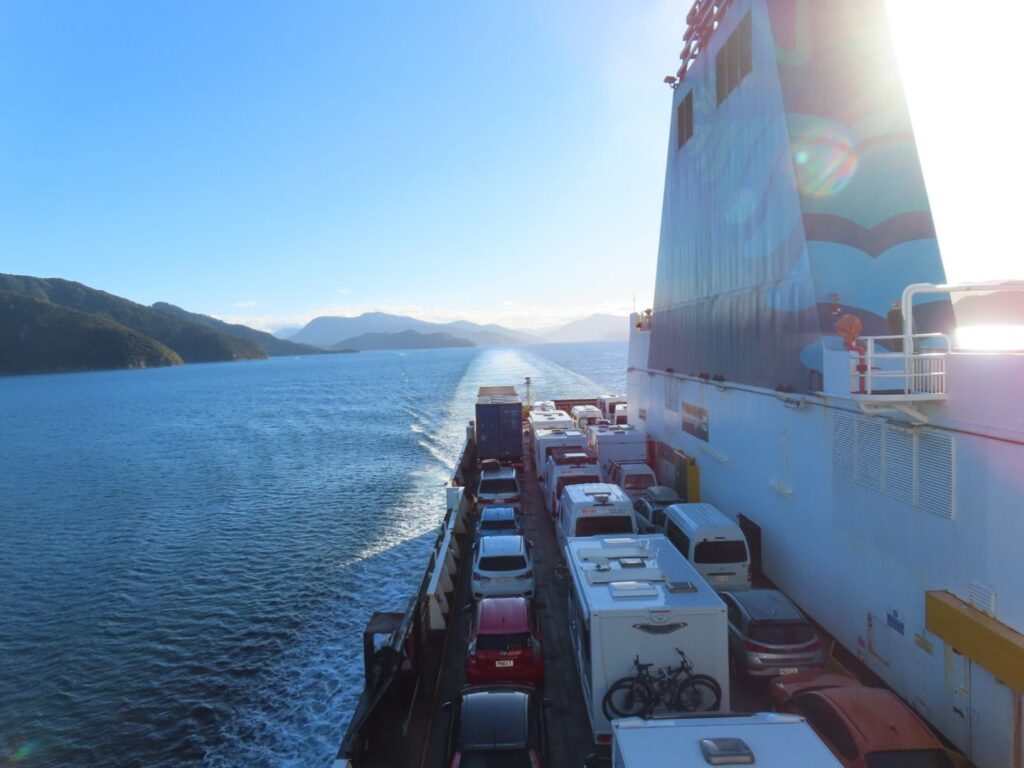 Heute ist unser letzter Tag auf der Südinsel. Als wir vor über einem Monat die Tickets gebucht haben, hatten wir Glück noch einen Platz auf der Fähre um 14:15 Uhr zu erhaschen, so dass wir nicht so spät drüben ankommen, was für Elias gut sein wird, dachten wir. Am Morgen machen wir uns daher rechtzeitig auf den Weg, wollen lieber früher los, um keinen Stress zu haben, obwohl es nur knapp 2 Stunden Fahrt sind. Kurz nach unserer Abfahrt sehen wir dann die E-Mail, dass unsere Fähre ca. 3 Stunden Verspätung haben wird. Wie ärgerlich. Wir hoffen, dass es dabei bleibt und nicht noch später wird. Eigentlich wären wir 17:15 Uhr in Wellington, der Hauptstadt Neuseelands, angekommen, nun wird es wohl mindestens 3 Stunden später.